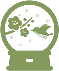 下鴨神社の梅は1本で多くの人を魅了します。その梅の名は「光琳の梅」。江戸時代の絵師・尾形光琳が描いた国宝「紅白梅図屏風」のモチーフだと伝えられているのがその名前の由来です。メジロも蜜を吸いに飛んできます